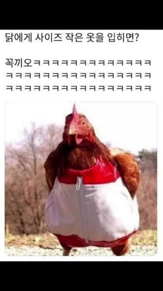 닭에게 싸이즈 작은옷을 입히면?