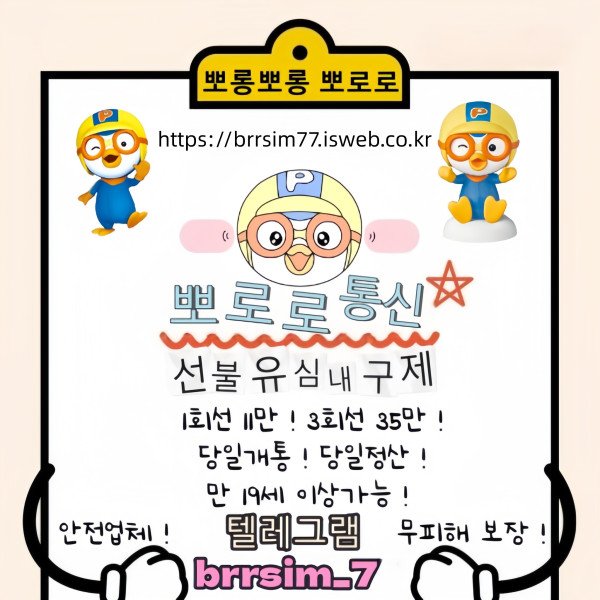 뽀로로 통신 급하게 자금이 필요한 순간 복잡한 절차 없이 신속하고 안전하게 도움을 받을수 있는 환경을 구축하였습니다 @brrsim_77 https://brrsim77.isweb.co.kr