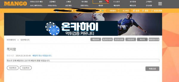 망고 경기 시작 12분전에 베팅했고 경시 지가전에 사이트에서 충분히 취소할 수 있음에도 사이트에서 승부를 봤고 양 팀 비등비등하게 갈때는 가만히 지켜보다가 49분뒤에 제가 베팅한 팀이 이기고 있으니까 갑자기 취소 놓는 개 악질 사이트입니다 형님들 회원이 이길 거 같으면 벳취소때리고 질 거 같으면 가만히 냅두고 이딴 식으로 운영하는 시재없는 개 거렁뱅이 사이트입니다. 다들 이 쓰레기 사이트 쓰고 계시다면 당장 이용 중지하시고 피해 가세요 사이트 문 닫거나 합의될시 글 내리겠습니다