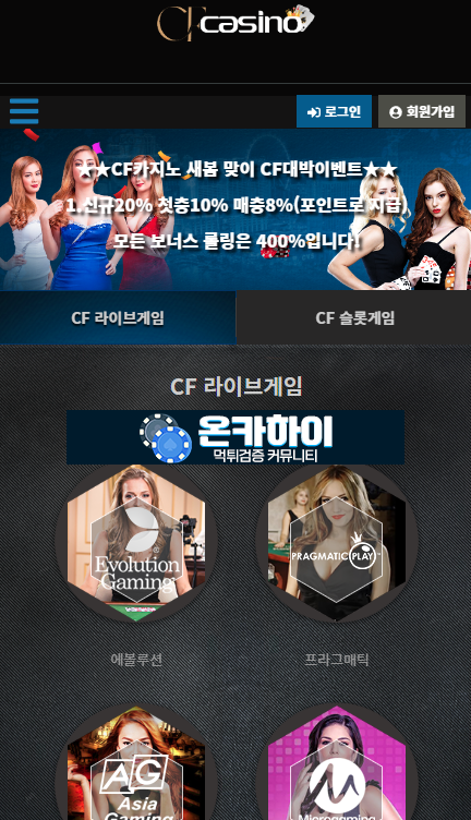 작성자 정보 온카하이 작성 작성일 2024.03.21 20:18 컨텐츠 정보 265 조회 목록 사이트 이름 cf카지노 사이트 주소 cfc100.com 검증결과 비추천 업체별점 상세 내용 본문 cf카지노 cfc100.com 먹튀솔루션 사용중 이용 비추천 관련자료 이전 SM 먹튀 검증 작성일 2024.03.21 20:21 다음 지구 G9 먹튀 검증 작성일 2024.03.21 20:16 댓글 0 등록된 댓글이 없습니다. 로그인한 회원만 댓글 등록이 가능합니다. 목록